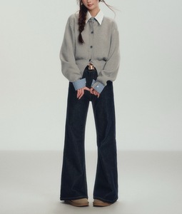 RECOIN RC 假两件衬衫领针织衫毛衣女2025年早秋季穿搭收假两件