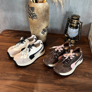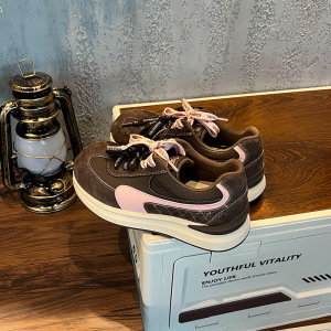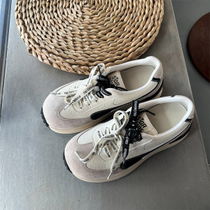 真皮德训鞋女款2025秋季新款运动老爹鞋百搭厚底拼色款休闲小白鞋