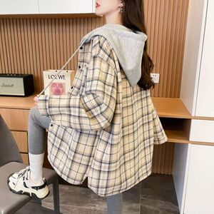 设计感复古格纹连帽卫衣衬衫外套女新款春秋减龄慵懒风中长款上衣