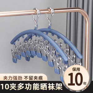 10夹袜子晾晒架多夹子家用多功能防风凉内衣无痕不锈钢晒袜子神器