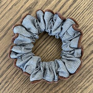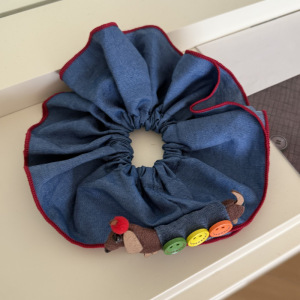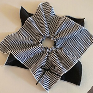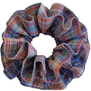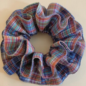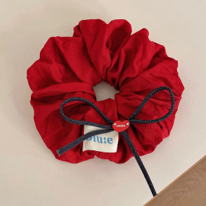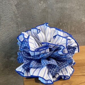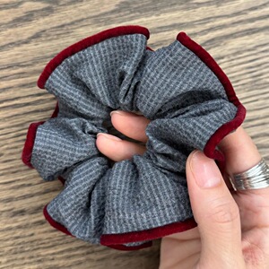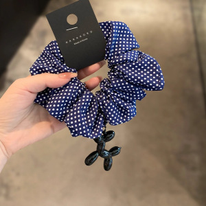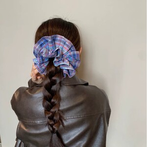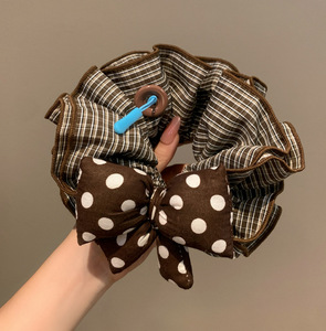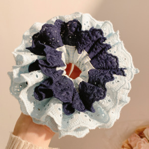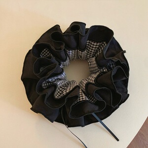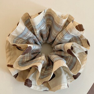 韩系藏蓝色格纹双层大肠发圈女气质扎头发丸子头发绳侧低马尾头绳