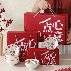 公司开业随手礼中式万事如意碗套餐釉下彩送礼品碗筷礼盒结婚乔迁