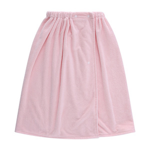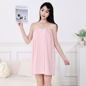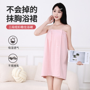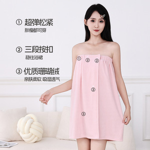 抹胸浴裙批发柔软吸水珊瑚绒浴巾可穿可裹宽松按扣式女士成人浴裙