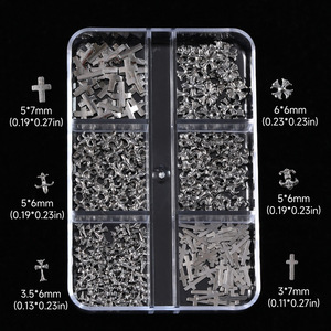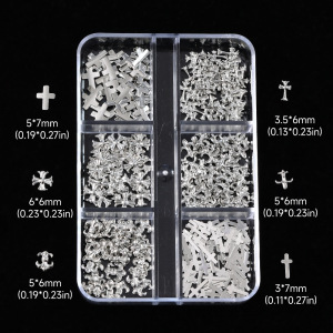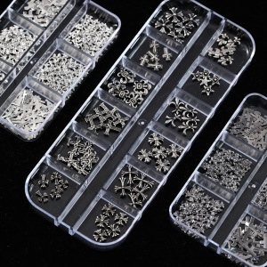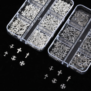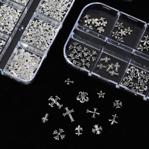 网红十字架克罗心合金美甲饰品跨境爆款12格黑暗复古金属指甲钻饰