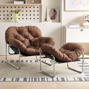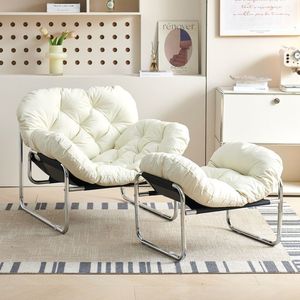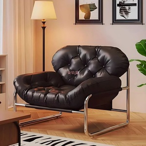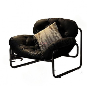 北欧风客厅阳台懒人沙发中古风纯色休闲椅午休铁艺沙发单人沙发椅