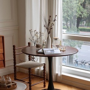 北欧复古郁金香胡桃圆形实木圆桌餐桌家用小户型咖啡阳台
