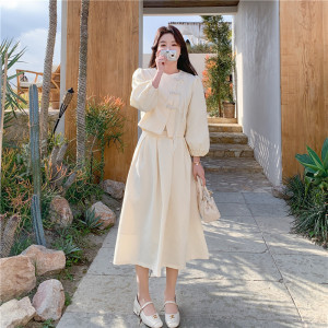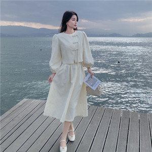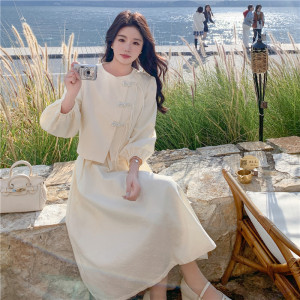实拍小香风新中式国风连衣裙2025春秋新款裙子套装女两件套半身裙