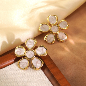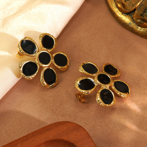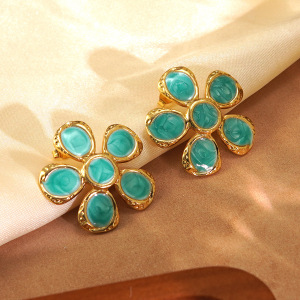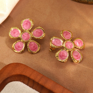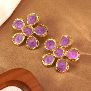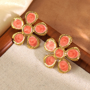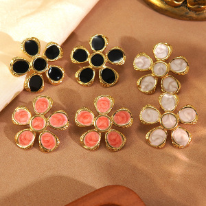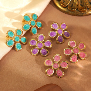欧美跨境ins时尚滴油花朵耳环轻奢高级感彩色花瓣不锈钢耳环饰品