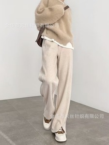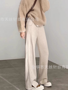 裤子女阔腿裤开叉设计亲肤舒适垂顺不易皱秋冬腰抽绳直筒宽松长裤