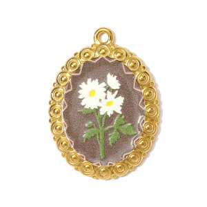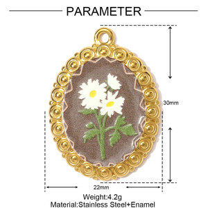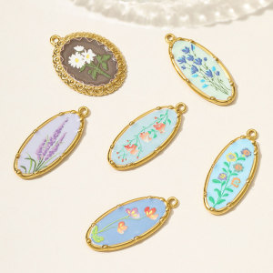 法式复古油画风水仙花喇叭花diy不锈钢吊坠女薰衣草项链钛钢饰品