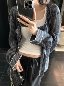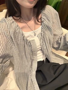 supernniyy 格子花序&设计款领口抽绳袖口蕾丝边防晒衫上衣外套