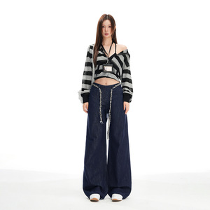 美式复古直筒牛仔裤女秋季新款宽松无腰头垂感显瘦舒适百搭阔腿裤
