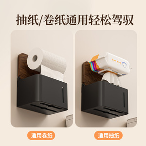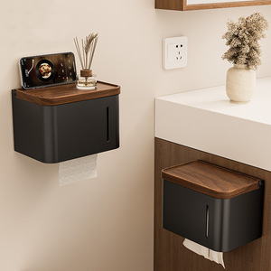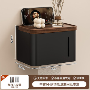 原木风浴室胡桃木纸巾盒家用洗手间免打孔抽纸盒设计感小众抽纸盒