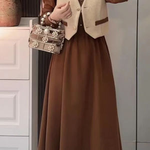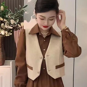 2025新款春秋复古气质显瘦洋气氛围感马甲连衣裙两件套装