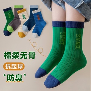 若行儿童袜子男童春秋中筒袜中大童抗起球无骨袜透气防臭学生袜
