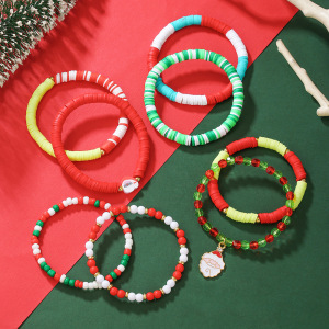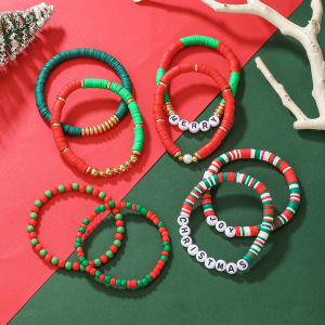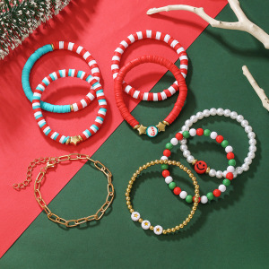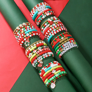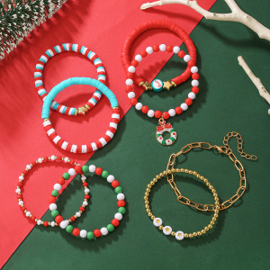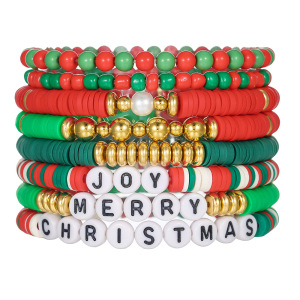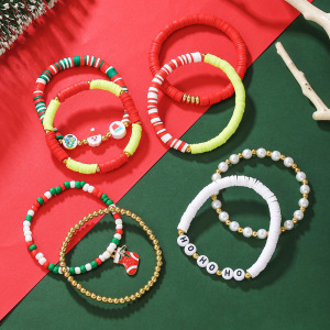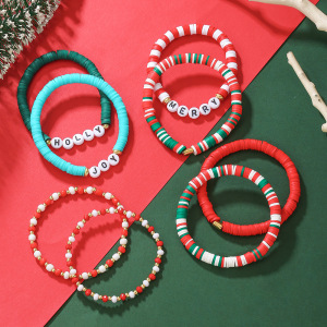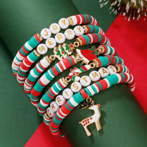 圣诞节手链女生可爱笑脸串珠合金手串吊坠彩色软陶字母手串配珠