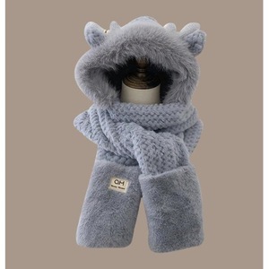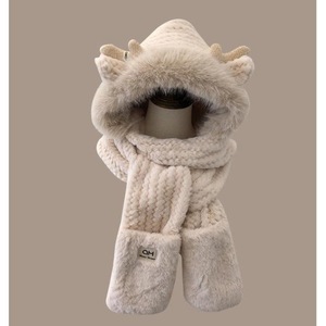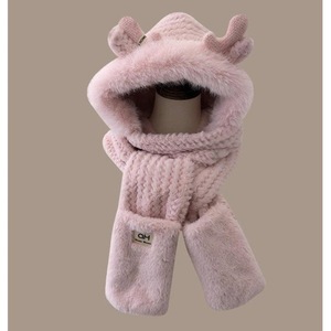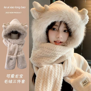 龙角帽子围巾手套一体加厚毛绒围脖龙宝三件套秋冬季户外防寒神器