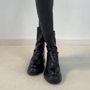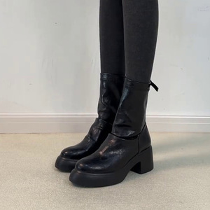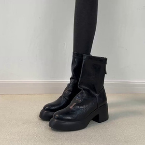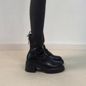 英伦风高跟短靴2025新款秋冬粗跟弹力瘦瘦加绒堆堆靴厚底马丁靴女