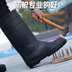 加厚高筒防蛇咬钢头钢底防护靴 防砸防刺穿工矿防滑耐磨劳保雨靴