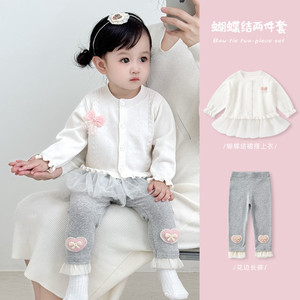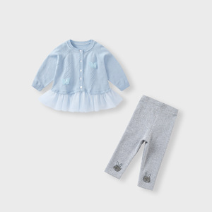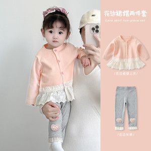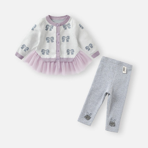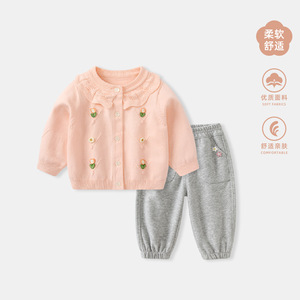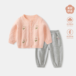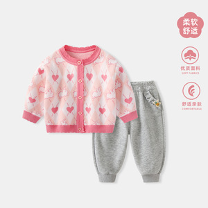 女童毛衣套装秋装女宝宝洋气针织上衣裤子两件套儿童外套春秋衣服