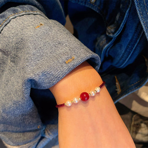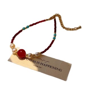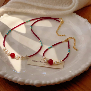 石榴石淡水真珍珠红玛瑙颈链手链套装秋冬新款绿松石串珠毛衣链