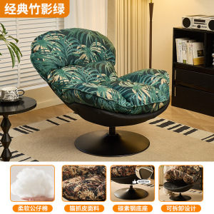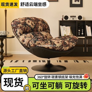 蛋壳椅旋转沙发轻奢家用客厅阳台休闲休闲椅单人懒人花布躺椅旋转