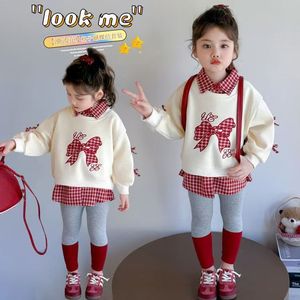 春秋新款女童蝴蝶结假两件卫衣套装2025洋气女童卫衣打底裤两件套