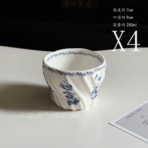 新中式复古青花手握杯陶瓷杯家用客厅待客喝水杯茶杯拿铁杯咖啡杯