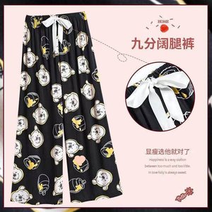 绵绸阔腿裤-黑底维尼熊