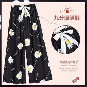 绵绸阔腿裤-字母雏菊