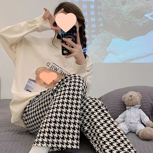 棉绸阔腿裤-千鸟花
