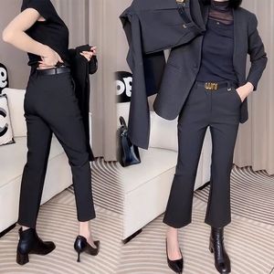 韩版欧货2025春夏季新款黑色时尚高腰显瘦休闲百搭九分微喇西装裤