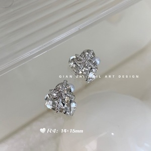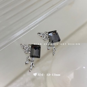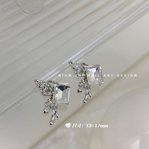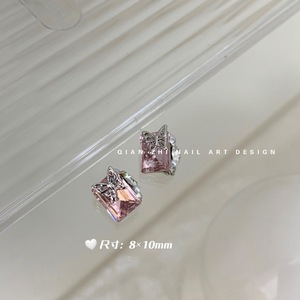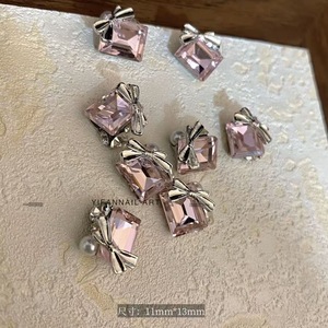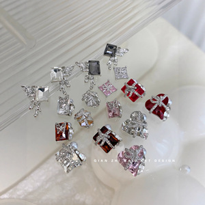 新年款圣诞礼物盒堆钻美甲饰品成品爆闪红色长方歪心指甲装饰大钻
