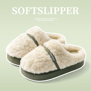 Cotton slippers月子棉拖鞋情侣款居家室内保暖防滑耐磨防臭外穿厚底加绒毛绒棉鞋
