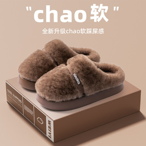 4.0加厚棉拖鞋情侣款居家保暖防滑耐磨防臭外穿加绒毛绒棉拖鞋男