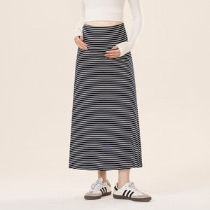 孕妇半身裙春秋2025新款小个子天丝裙下半身孕期托腹条纹半裙秋装