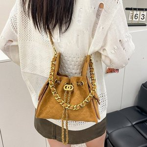 小香风菱格链条包包女2025新款大容量抽绳水桶包单肩斜挎机车包ァ