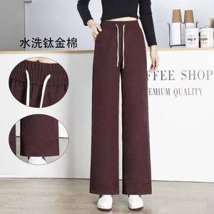 钛金棉阔腿裤女春秋2025新款高腰垂感宽松休闲大码斜纹直筒长裤子