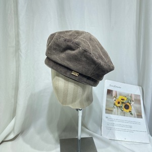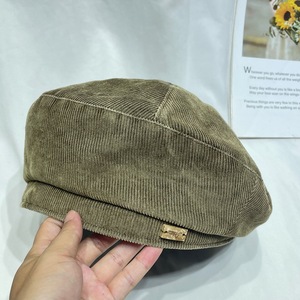 韩版时尚水洗做旧灯芯绒贝雷帽子女秋冬复古英伦画家南瓜帽蓓蕾帽