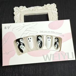 万圣节穿戴甲外贸跨境30片黑白鬼脸立体滴胶短杏仁美甲贴片欧美