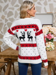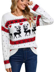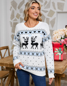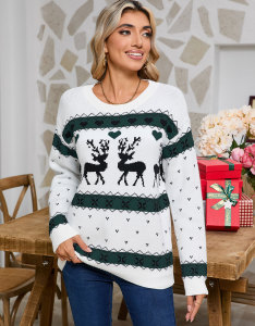 欧美秋冬外贸针织衫跨境亚马逊圣诞节麋鹿提花套头圆领上衣毛衣女