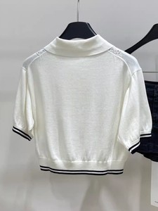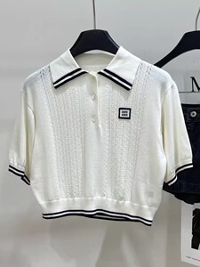 南油高货 明星同款学院风M字母徽标翻领镂空短袖针织衫polo衫女