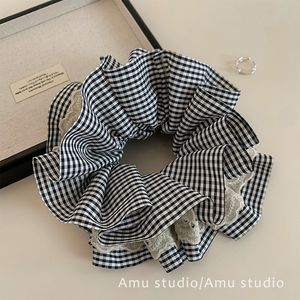 韩系格子双层大肠发圈低马尾发绳丸子头皮筋扎头发头绳头花发饰品