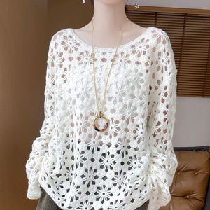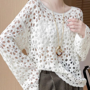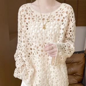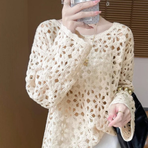 2025早秋新中式重工钩花镂空针织衫女通勤秋季慵懒风毛衣罩衫