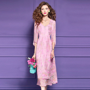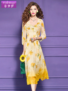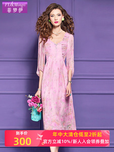 菲梦伊100桑蚕丝印花连衣裙女秋季重磅高端真丝烫钻海边度假长裙