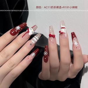 安可拉红凯蒂猫卡通美甲饰品网红kitty猫红色蝴蝶结新年指甲钻饰