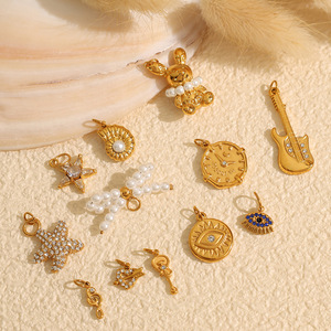 欧美跨境爆款精致DIY多样镶钻吊坠配件不锈钢镀18K金百搭吊坠集合
