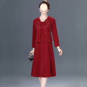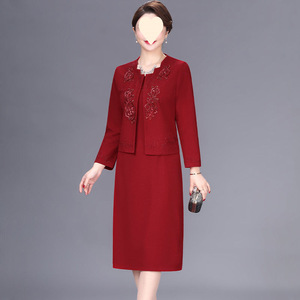 妈妈婚礼服两件套连衣裙秋小个子大码气质喜婆婆婚宴装套装裙