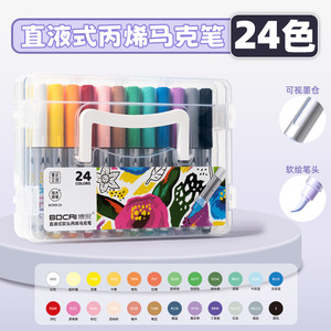 博采直液式软头丙烯马克笔大容量不透色可叠色学生美术专用彩色笔