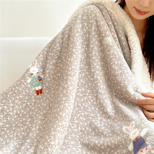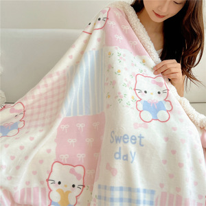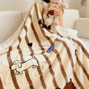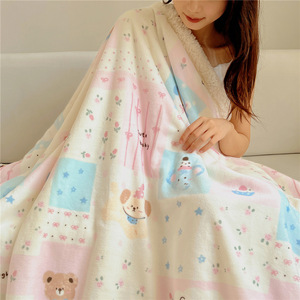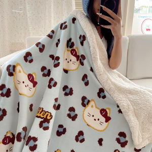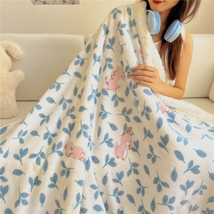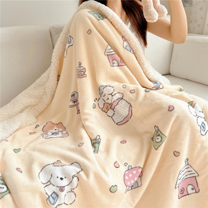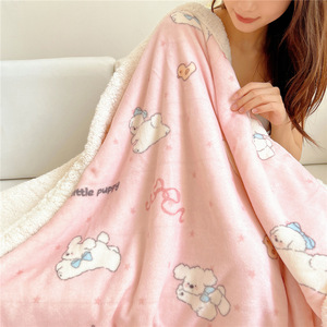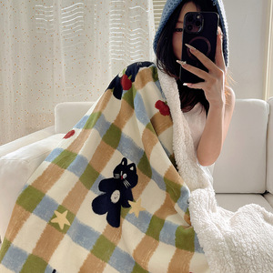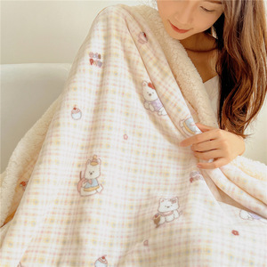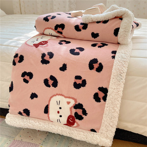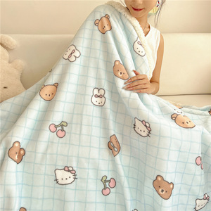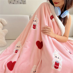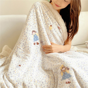 ins风小清新少女卡通加厚牛奶绒羊羔绒毛毯保暖午睡毯多功能毛毯~